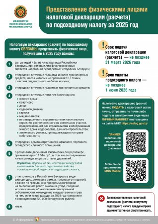 Представление физическими лицами налоговой декларации (расчета) по подоходному налогу за 2025 год